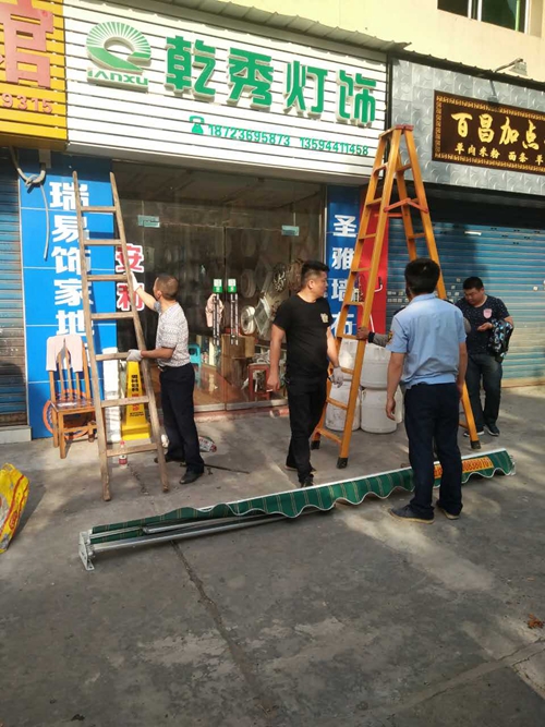 为保障行动顺利开展,在拆除前,执法队员耐心开展宣传解释工作,督促业主自行整改。对限期时间据不整改的实施强制拆除。在拆除现场,一位店主说原来搭棚子是为了方便做生意,城管的工作人员上门劝说过多次,自己也发现私自搭建雨棚确实不安全,决定配合城管工作人员将其拆除。
